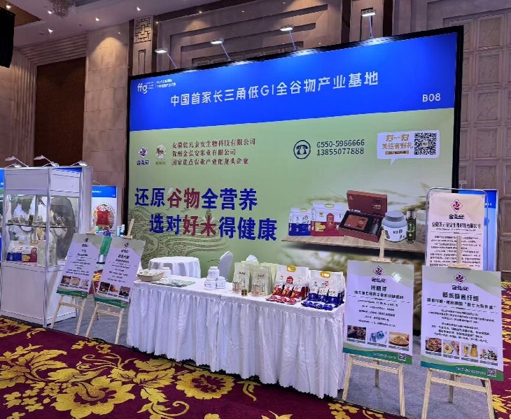 滁州金弘安米业董事长陈顺成、张林敏亲临现场,共同推介中国首家长三角低GI全谷物产业基地及深加工产品。“还原谷物全营养,选对好米得健康”-重塑一粒米的价值,定义功能主食新未来。我们不止于饱腹,更关乎健康,我们深入挖掘大米的无限潜能,金弘安米业为您带来控糖新选择-低GI大米、米珍营养米、胚芽、胚芽油、胚芽粉、胚芽片、米珍粉、米珍片等,专注大米深加工,致力于释放每一粒米的天然滋养力。